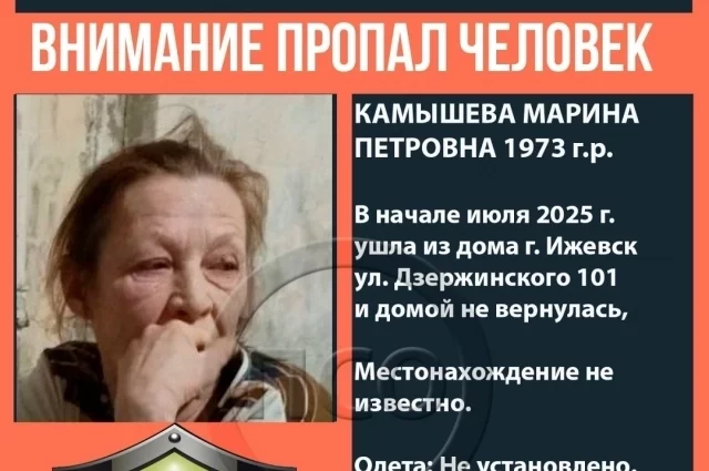 В Ижевске ищут 52-летнюю женщину, пропавшую в июле 2025 года
