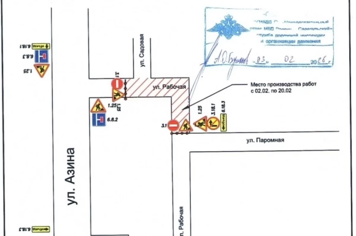 Это связано с возведением самотечной канализации. Во время строительных работ — с 5 по 20 февраля — будет закрыт проезд по участку улицы Рабочей, расположенном между улицами Азина и Паромной.
